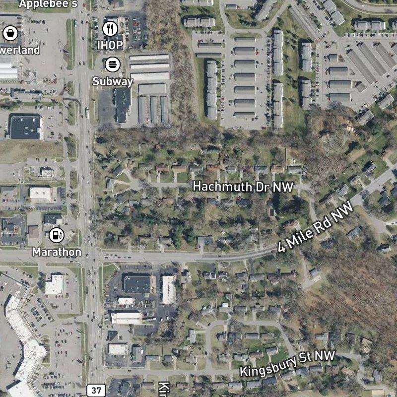 You'll expect quiet suburban subdivision, and you'll get that—but also a place where downtown Grand Rapids is ten minutes away and a restaurant is a two-minute walk. Hachmuth Plat spreads across 19 acres with lots averaging just under half an acre, the kind of density that keeps things from feeling sparse without crowding you in. Homes here run around $328K, with Comstock Park Public Schools serving the area. Around 174 restaurants sit within a mile—enough that your dinner options aren't determined by your zip code alone—and there are six parks in that same radius, including an unnamed one a ten-minute walk away. Transit is literally steps away, which means you can choose not to drive without it becoming a whole thing. Gerald R. Ford Airport is about 25 minutes north, the kind of distance you stop noticing after a few trips. It's the sort of plat where you can keep things simple: walk to coffee, drive to the city, stay put.