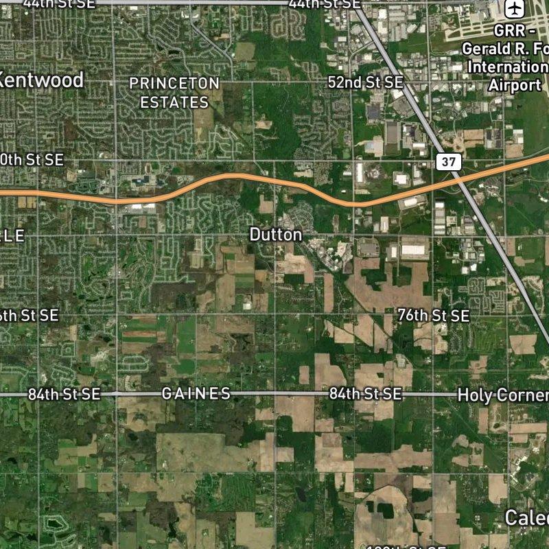 What might surprise you about this corner of Gaines charter township is how much living happens in just a couple of miles — you're looking at 132 restaurants within walking distance, a grocery store about a 7-minute walk away, and a coffee shop not much farther, yet the neighborhood itself spreads across 2,660 acres with the kind of breathing room you'd expect from a more rural setting. Homes here run around $440K and tend toward traditional stone and vinyl construction, with Caledonia Community Schools serving the area. The location does the heavy lifting: downtown Grand Rapids is under 20 minutes away by car, and Gerald R. Ford Airport sits just 10 minutes south. There's a pond on the property, and Dutton Shadyside Park lands a 9-minute walk from here — close enough that you can actually use it without planning a whole outing.