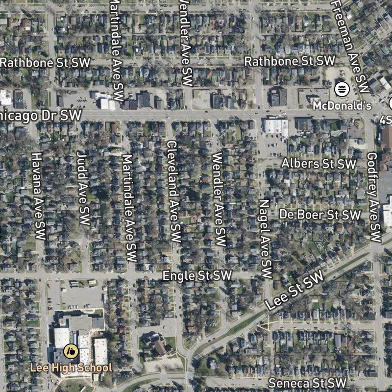 Homes run around $238K in this compact 5-acre subdivision where lot sizes hover near a tenth of an acre—tight, urban-feeling parcels that keep everything walkable and close. You're basically steps from a transit stop, which is clutch if you're tired of being tethered to a car, and there's a restaurant just a two-minute walk away whenever you want to bail on cooking. The nearest dog park is an eight-minute walk, Kimball Stadium lands within six minutes on foot, and you've got seven parks within a mile, so there's actual green space to burn. Downtown Grand Rapids is seven and a half minutes away, which means you can work or play there without it feeling like a commute. Godfrey-Lee Public Schools serves the area, and the whole thing sits within John Drieborg's Add. Area, a part of West Michigan where density meets accessibility.