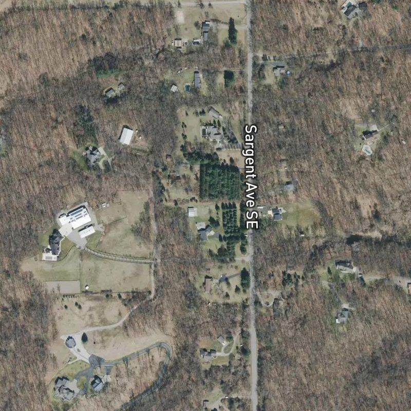 Early evening light hits these 3-acre lots just right, turning the wide yards golden and making the space feel even more generous than it already is. The 14-acre subdivision sits in a genuinely rural pocket where you're not fighting neighbors for elbow room—each home gets real land to breathe on. Downtown Grand Rapids is about 20 minutes away when you need it, and Gerald R. Ford Airport runs 24 minutes, which means you've got easy access without the hum of traffic in your backyard. There are three parks within a mile, including Ada Roadside Park for a quick walk, and the Grand River boat launch sits just two miles down the road if water access matters to you. Homes here run around $538K, and they're served by Forest Hills Public Schools. When you need groceries or dinner, both are about two and a half miles away—close enough to be convenient, far enough that you're choosing to drive there rather than stumbling out your door into retail sprawl.
