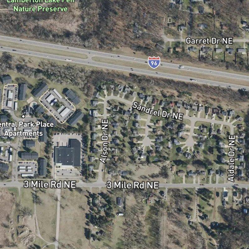 You pull into Hillside Estates and notice right away how the lots breathe—each one a generous quarter-acre with room to actually move around, the kind of space that doesn't demand constant yardwork but rewards a little attention. This 14-acre subdivision sits close enough to downtown Grand Rapids that you're hitting the office in just over 12 minutes, yet far enough out that you're not hearing the city hum at night. Homes run around $387K, which lands you solid ground in the Forest Hills Public Schools district. A dog park is a three-minute stroll away, and if you want proper hiking, Lamberton Lake Fen Nature Preserve is walkable in under ten minutes—the kind of thing that makes a Sunday morning feel less like an errand and more like a real break. Eighty-four restaurants cluster within a mile, along with two dozen grocery stores, so you're not isolated despite the breathing room. Gerald R. Ford Airport sits about 23 minutes south if you need it, and that neighborhood restaurant or coffee run typically means a short walk or a five-minute drive depending on what you're after.