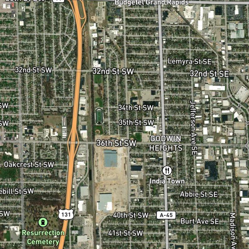 The lots here are small—0.18 acres each—which means the 60-acre subdivision reads as dense and walkable rather than sprawling. You're minutes from Hillcroft Park, with four parks within a mile, and restaurants cluster nearby: a coffee shop is a 7-minute walk, a restaurant just 5 minutes, and 42 restaurants total within the mile radius. A grocery store sits under a mile away, and a transit stop is steps from your door—handy when downtown Grand Rapids is only 8 minutes by car. Homes here run around $212K, placing this squarely in the accessible middle of the market. Godwin Heights Public Schools serves the area. It's the kind of older suburban subdivision where the proximity to everything—parks, food, transit, and the city itself—does the heavy lifting.