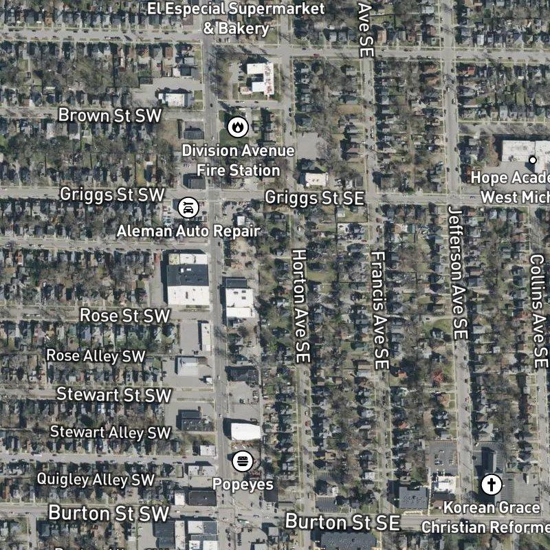 Horton & Kirtland Sub. sits just southeast of downtown Grand Rapids, eight acres of modest platted lots where you're literally steps from restaurants and a quick walk to groceries. The Grand River runs nearby, and you've got Garfield Park within an easy stroll—one of eight parks within a mile—plus a transit stop just two minutes on foot. It's the kind of location where downtown is six or seven minutes away, but you don't feel like you're living in the thick of it.