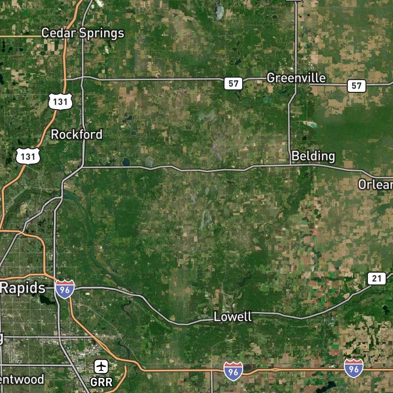 Surrounded by farmland and over two dozen lakes that dot Grattan township, Island Park Murray Lake Area spreads across nearly 10,000 acres of rural Kent County, about 37 minutes northeast of downtown Grand Rapids. Big Crooked Lake sits right at the neighborhood's edge, and the nearest public boat launch at Murray Lake is less than two miles away—enough distance to keep things quiet but close enough that water access defines daily life here. Ranch-style homes with aluminum siding cluster throughout, running around $475K, with Lowell Area Schools serving the area. The nearest grocery is 3.6 miles out, and the one restaurant locally is 2.0 miles down the road, which means this is genuinely countryside living: you're buying space, water views, and the kind of solitude that only works if you're genuinely okay with driving for milk.