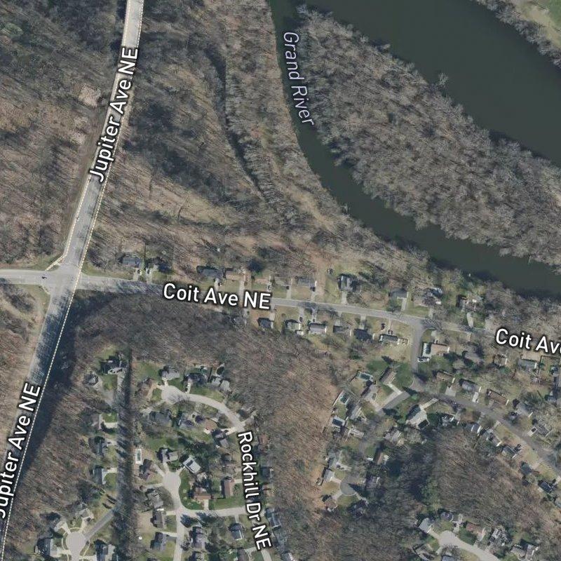 Driving through Isleview Acres, you move at the speed of neighborhood—tree-lined streets, modest setbacks, homes in the $410K range on lots that average under half an acre each. The 11-acre subdivision sits in the Fingers Plat Area, where Northview Public Schools serves the district, and downtown Grand Rapids is a fifteen-minute run. A grocery store and half a dozen restaurants land within a mile or so, coffee within walking distance in either direction. Grand Isle Township Park sits nine minutes on foot; four parks cluster within a mile. If water's your draw, Versluis Lake sits 1.8 miles out, and the Rogue River Mouth Launch—where you can actually get a boat in—is just over a mile away.