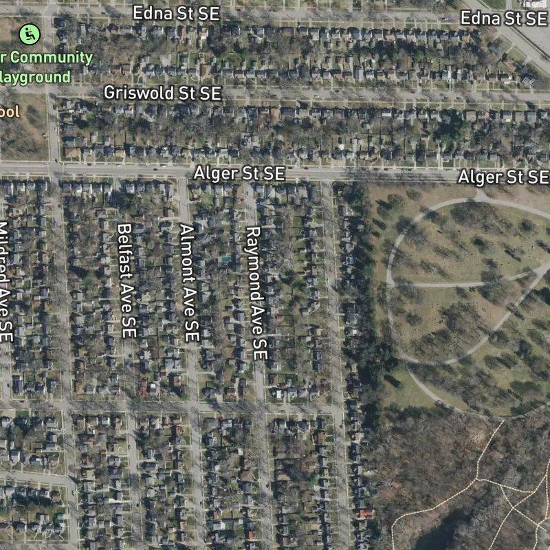 The brick bungalows and cottage-style homes here sit on modest lots that feel intimate rather than cramped, their front porches close enough to the street that you catch the rhythm of the neighborhood as you walk. J.B. Hosken Add. occupies 9 acres within Alger Heights, where homes cluster around tree-lined blocks and median values hover around $309K—accessible enough that residents tend to stay put. Grand Rapids Public Schools serves the area, and Seymour Park sits a short walk away among a dozen other green spaces nearby. The real draw is location: dining and errands are walkable (coffee shops and grocers about 7 minutes on foot), you're 11 minutes from downtown Grand Rapids, and transit access is strong without requiring a car for every errand. This is the kind of neighborhood where 36 restaurants and the same number of grocery stores operate within a mile or two—enough density to feel connected without the sprawl.