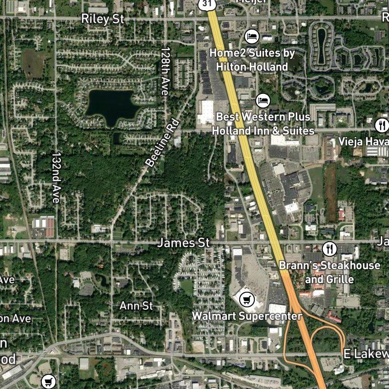 Driving north on US-31 through this stretch feels like watching the suburban sprawl thin out—you're moving through 187 acres where the road itself becomes the main artery, with shopping and dining clustered within steps of where you'd pull off. Groceries, coffee, restaurants (there are 300 within a mile alone) sit shoulder-to-shoulder along the corridor, making it easy to grab what you need without hunting. The Community Center anchors James Street as a physical landmark, and transit access is immediate—no waiting around. Homes here run about $338K, and you're roughly 30 minutes from Grand Haven's beaches or 38 minutes to downtown Grand Rapids, which makes this pocket feel like genuine in-between space: close enough to reach either destination without living in their shadow. Windmill Island Gardens sits 1.3 miles south if you're looking for green space, though Howard Dunton Park's boat launch at 1.8 miles gives you quick water access. It's the kind of place where location and convenience matter more than atmosphere—everything you'd actually use is already there.
