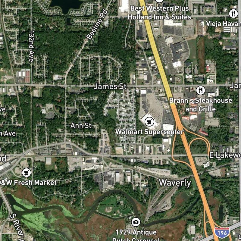The stretch along James Street where US-31 heads south has that practical suburban feel—modest ranch homes with room to breathe, and everything you actually need within steps. A grocery store, restaurants, and coffee are all right there, which means you're not burning time or gas for the basics. The community center anchors the neighborhood at 12343 James Street, and from there you've got real access to the township's bike path network and parks like Windmill Island Gardens, less than a mile away. Homes in the area run around $233K, and you're part of Holland charter township, which spreads across diverse residential and business zones. Grand Haven beach is about 30 minutes south if you want to catch sunset, and there's a boat launch at Howard Dunton Park just 1.5 miles over—enough distance to feel like you've escaped without actually going far.