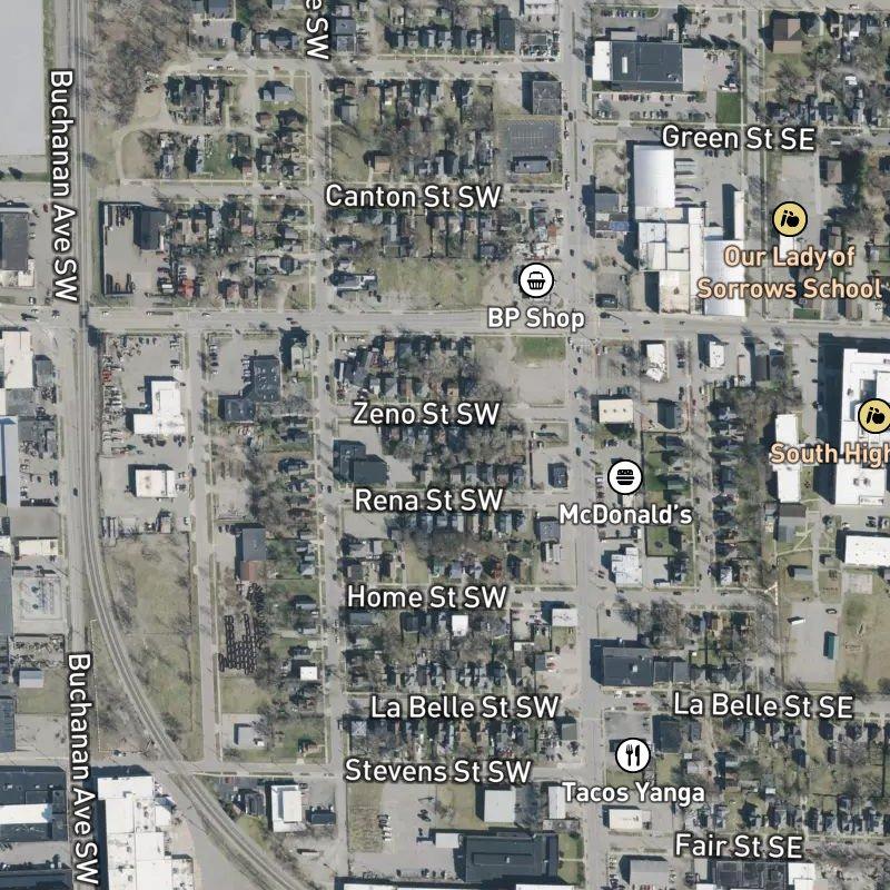 You're a short walk from restaurants—literally steps away—and there's a transit stop two minutes on foot, which means you're not tethered to a car the way you might be elsewhere; downtown Grand Rapids is less than five minutes away when you need it. The subdivision sits on 7 acres of modest lots in Southwest, a riverside neighborhood anchored by museums, breweries, and the kind of walkable commercial strip that actually has character. Grand Rapids Public Schools serves the area. Median home values hover around $124K, and you've got nine parks within a mile—Rasberry Field is a six-minute walk if you want to move without overthinking it. There's a boat launch at Butterworth Park if you're into that sort of thing.
