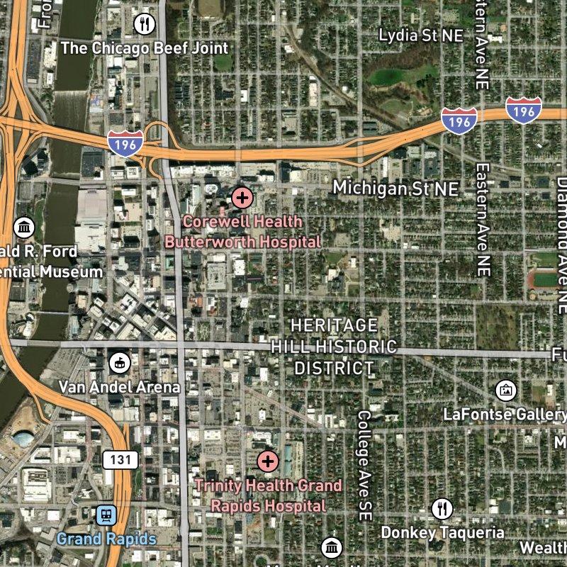 Kendall's Add. sits in the heart of Heritage Hill, where downtown Grand Rapids is just two minutes away and the architectural styles shift every few blocks—Greek Revival next to Prairie, Victorian gables shadowing art deco storefronts. The subdivision spans 56 acres of tightly plotted lots (averaging 0.19 acres each), the kind of urban density that puts a transit stop and a restaurant within steps, then somehow multiplies that access into 618 dining options and 35 parks compressed into a mile radius. Homes here run around $597K and feed into Grand Rapids Public Schools. You're two minutes from downtown, twenty minutes from the airport if you need to leave, and standing in a neighborhood where the lumber barons and judges who built this city actually lived—not the polished, preserved version of Heritage Hill, but the real ongoing one, where people walk to coffee, walk to work, and walk past one of the largest concentrations of American architectural history without thinking twice about it.
