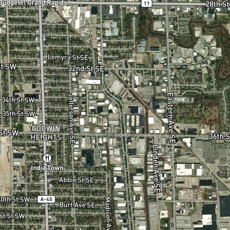Driving through Kent Industrial Center, you feel the rhythm of a working landscape—low-slung buildings, clean lines, the hum of actual commerce happening. The subdivision spreads across 154 acres in the Hales Plat Area, close enough to downtown Grand Rapids that a commute takes under 10 minutes, yet far enough out that you're not paying for proximity alone. What makes this place land differently is the density of what's nearby without feeling crowded: 48 restaurants and 66 grocery stores within a couple of miles, a transit stop steps from the street, Plaster Creek park a short walk away. Homes here run in the mid-$200s to low-$300s, and Godwin Heights Public Schools serves the area. It's the kind of place where you can actually get somewhere—whether that's work, a coffee run, or the airport in under 17 minutes.