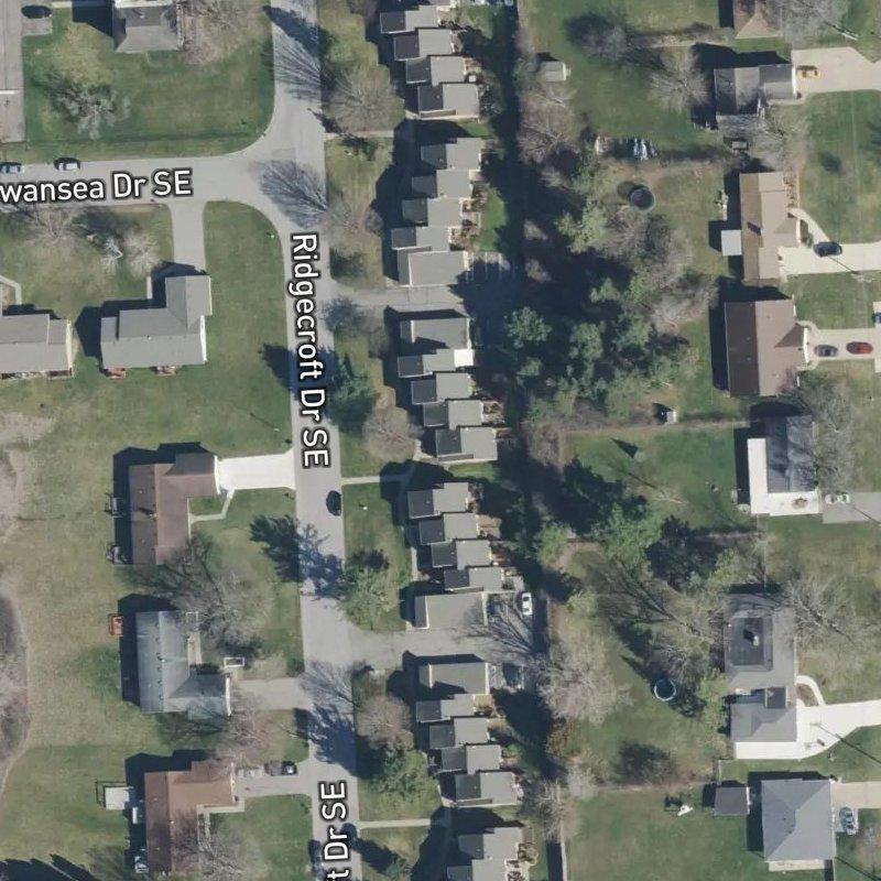 The moment you turn onto Ridgecroft Drive, you feel the exhale—a quiet cul-de-sac lined with townhouse-style condos that somehow exist in the middle of everything without feeling like they're part of the rush. Built in 1973, Kentwood Village has the solid, unfussy bones of a place that works: end units with decks, detached garages, floor plans that don't waste space. A grocery is a four-minute walk away, and restaurants start practically at your front door; 276 of them sit within a mile if you want options. The nearest transit stop is two minutes on foot. Downtown Grand Rapids is 15 minutes north; Gerald R. Ford Airport, 12 minutes east. Homes here run around $195K—the kind of price that lets you actually own something in a place with real bones, not apologize for the neighborhood's existence. Grand Rapids Public Schools serves the area. Camelot Park is just over a mile away if you need grass that isn't your own. The community allows pets with association approval, which matters if you've got a dog that's part of the deal. This is the part of Kentwood where people who've lived in five cities and three states finally stop renting and buy something because the location makes sense, the building is maintained, and nobody's trying to sell you a version of yourself you don't want to be.