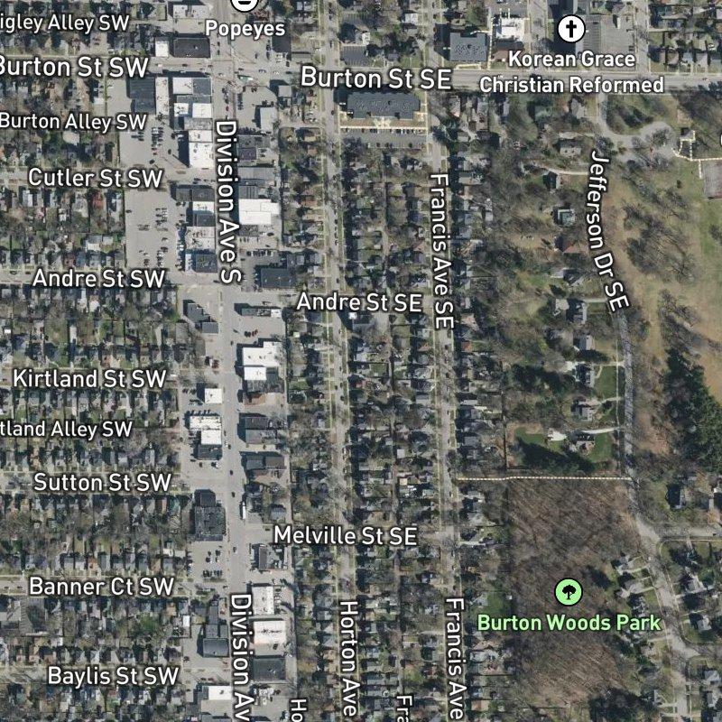 You'll find Kenwood Addition more compact and walkable than most West Michigan subdivisions—32 acres of homes on modest lots where you're steps from restaurants, a transit stop, and Burton Woods Park's four-minute walk away. Sitting inside Garfield Park, the subdivision shares the larger neighborhood's dining scene: over 70 restaurants within a mile, including a dozen Latin spots along Division Avenue, plus Rodriguez Supermarket for specialty groceries nearby. Homes here run around $232K, and the school district is Grand Rapids Public Schools. Downtown's a seven-minute drive, which means you can work or play in the city core and still keep a real yard. The bones of the neighborhood—Queen Anne Victorians and early American Foursquares from the 1800s—give the blocks a solid, established feel without feeling remote.