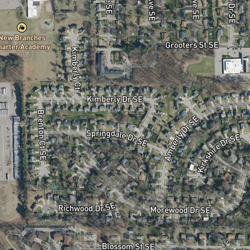 Kimberly Park sits within the larger Ken-O-Sha Park area on Grand Rapids' southeast side, a 49-acre subdivision where ranch and raised ranch homes from the mid-1900s typically list in the $349K range and put you fourteen minutes from downtown. The neighborhood borders one of the region's major employment hubs and sits close enough to Gerald R. Ford International Airport that commutes feel manageable rather than grinding. A transit stop sits steps away, and grocery stores cluster nearby—about eight minutes on foot—alongside 72 restaurants within a mile, giving the area a density of options that belies its residential feel. Four parks fall within a short drive, and the broader Ken-O-Sha preserve offers its own trail system just beyond the subdivision edge. New Branches Charter Academy serves the area's school-age children, and the subdivision's quiet streets reflect the practical, unpretentious character of the wider southeast Kent County community.