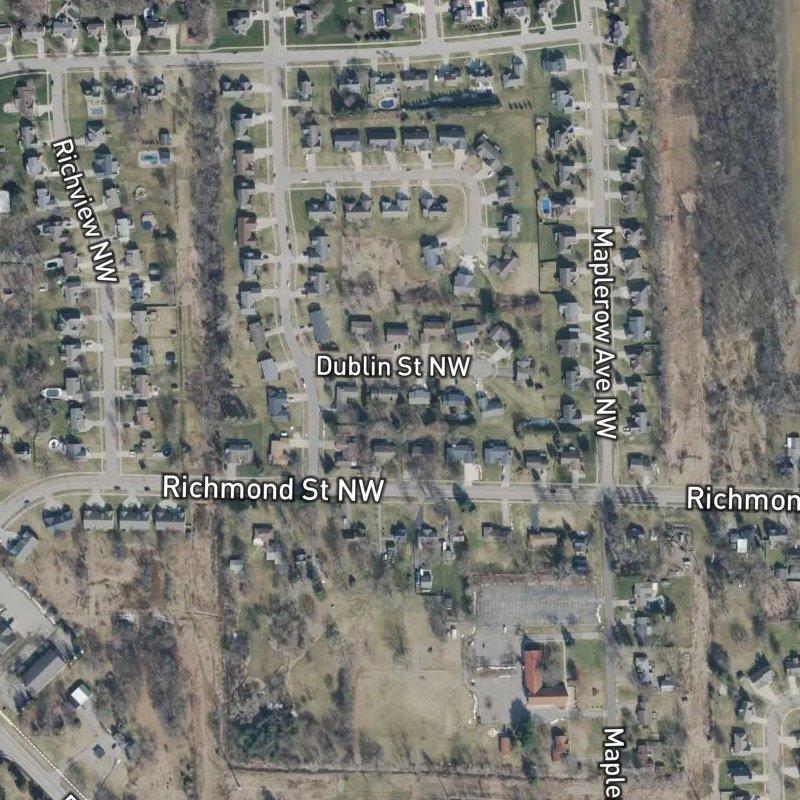 What makes Kinney Plat stick with you is the land itself—twelve acres laid out with real breathing room between houses, the kind of space that feels deliberate rather than accidental. You're looking at a platted subdivision where the lots actually give you something to work with, sitting just fifteen minutes from downtown Grand Rapids and close enough to Gerald R. Ford airport that the drive is under thirty-two minutes when you need it.
