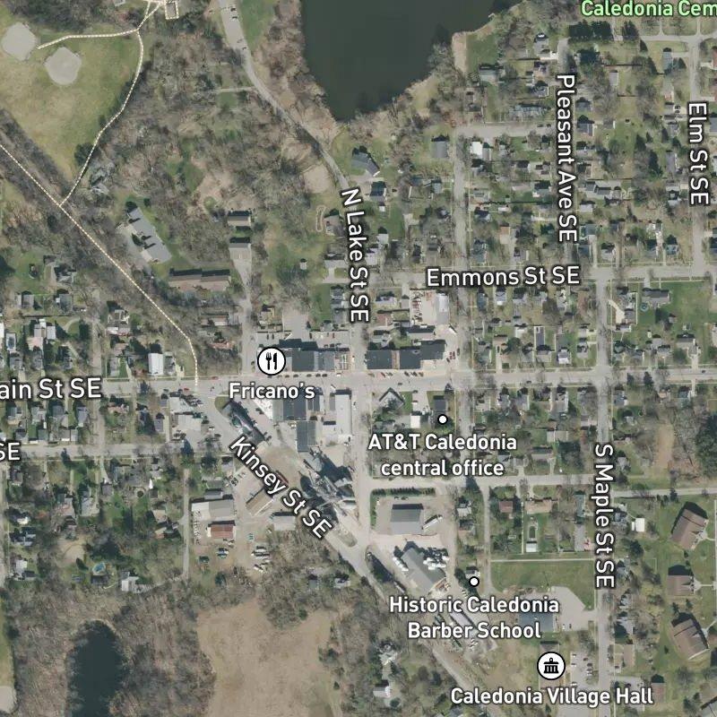 You pull up and smell the grills firing up—there's a restaurant practically on the corner, and another thirty within a short drive, which tells you something about what this place is built around. Kinseys Plat sits on 29 acres in the 92nd Street and Kraft Avenue area, a platted subdivision where the lots run tight and efficient at about a fifth of an acre each, the kind of footprint that keeps things walkable for the essentials. The grocery is a five-minute walk, coffee shops sit ten minutes out, and if you've got a dog, the park's another ten. Emmons Lake is just a third of a mile away—close enough to feel it—and Caledonia Lakeside County Park is practically a neighbor. Homes here run around $308K, and the school district is Caledonia Community Schools. Gerald R. Ford Airport is under twelve minutes north if you're catching a flight, and downtown Grand Rapids opens up in about half an hour when you need it.