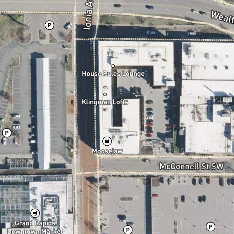 Golden hour hits Klingman Lofts I when the west-facing windows catch the afternoon light and the Grand River reflections wash across the brick. That's when you realize you're in Southwest, a riverside neighborhood where the Gerald R. Ford Presidential Museum and Grand Rapids Public Museum sit a short drive away, and the Pew Campus sprawls across the riverfront. You're steps from transit, a couple minutes' walk from coffee, and surrounded by three hundred-plus restaurants within a mile—the kind of density that makes spontaneous dinner happen. Heartside Park is a three-minute walk if you need trees and air without leaving the urban grid.