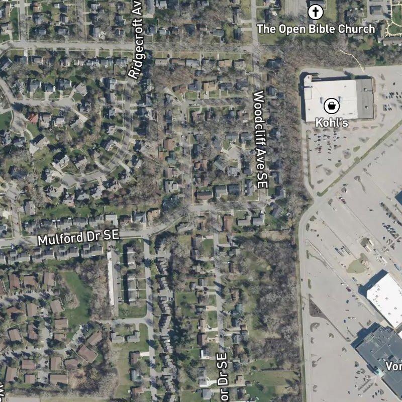 Knollcrest Estates sits within Ridgemoor, where tree-lined streets and spacious lots define the residential character—homes here run around three hundred thousand dollars, and you're a five-minute walk from grocers, a few steps from restaurants and transit. The subdivision spans twenty-three acres in a neighborhood where trees seem to canopy every street, and Camelot Park sits about a mile away for weekend mornings. Grand Rapids Public Schools serves the area, and downtown is fourteen minutes by car, with Gerald R. Ford airport just twelve minutes further. What makes living here work is the density of actual amenities—nearly three hundred restaurants within a mile, forty-plus grocers within two—wrapped around the kind of land and quiet that makes you feel like you've left the city without actually leaving it.