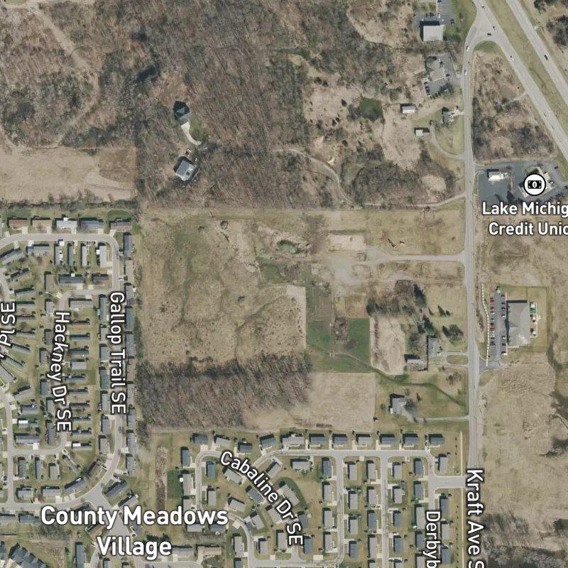 You're driving through Caledonia Township on what feels like open land, then Kraft Farms appears—43 spacious lots carved into 17 acres with enough breathing room that you're never staring at a neighbor's gutter. The homes here are new construction from Allen Edwin Homes, energy-efficient designs with customizable layouts and private roads, the kind of setup that lets you actually plan your kitchen without inheriting someone else's 1987 tile decisions. You're about 23 minutes from downtown Grand Rapids, which is close enough that you're not commuting to another planet, and Gerald R. Ford airport sits just over 7 minutes away if you fly out regularly. The wetlands that border the development aren't decorative—they're actually there, creating a buffer between you and the suburban hum, and the Paul Henry Thornapple Trail is nearby for the kind of walking that doesn't require a destination. Homes here run around $414,000, and they come with RESNET Energy Smart Home certification, which saves owners over $1,000 a year—the math works out over time. There's a grocery store about 2.8 miles down the road and a dozen restaurants within a mile, plus a coffee shop 13 minutes on foot if you're willing to actually go for it, which most people aren't at that distance. The community sits in the Caledonia Community Schools district, and the whole setup—the sidewalks, the open spaces, the way the lots don't feel crowded—reads like someone actually thought about what goes between "new construction" and "actual place to live."