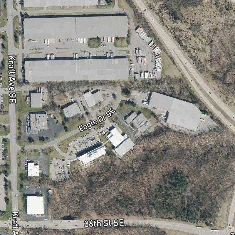 Kraft Industrial Park sits on twenty-nine acres in Cascade charter township, just off the main corridors that connect you to Gerald R. Ford International Airport in about nine minutes or downtown Grand Rapids in under seventeen. You're surrounded by the workings of a suburban industrial area—light manufacturing, distribution, and the kind of practical infrastructure that keeps things running—but it's only a short drive to coffee shops and grocers, with over a hundred restaurants and thirty grocery stores within a couple miles if you need them.