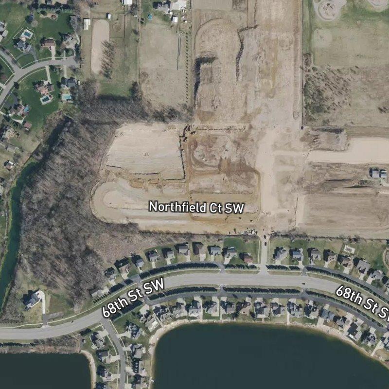 Straight gravel and manicured lawns greet you at the entrance—this is a 12-acre subdivision where traditional homes in stone and vinyl sit on plots that feel genuinely spaced out. Homes here run around $615K, and they're anchored by Byron Center Public Schools. A small pond runs through the property, adding a touch of water without the wetland headaches. Grocery, coffee, and restaurants cluster within about a mile—there are a dozen grocers within two miles if you want options—so you're not stranded, but you're not stepping out your door into chaos either. Byron Township Whistlestop Park sits 1.4 miles away for the occasional walk. Downtown Grand Rapids is 15 minutes out, the airport about 19, which keeps you tethered to the region without feeling like you're paying a commute tax. It's a straightforward residential play in the Springfield Estates Area—no frills, no marketing angle, just established suburban living with actual space between houses.
