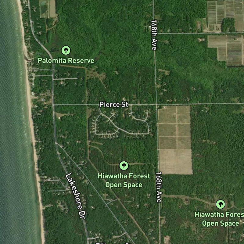 What surprises most people about Lakeshore Woods is how much space you actually get—nearly an acre per lot on average across the 80-acre subdivision, which means your neighbors aren't peering over the fence. It's a wooded setting where you can breathe, though you're still close enough to hit downtown Grand Rapids in under an hour if you need to. The real draw, though, is how you're positioned between the beach (about 15 minutes away) and a handful of parks right in your backyard—Hiawatha Forest Open Space is a short walk, and there are five parks within a mile if you're counting. Homes here run around $1.2M, and you're feeding into Grand Haven Area Public Schools. It's the kind of place where you get land, woods, and water access all in one move.