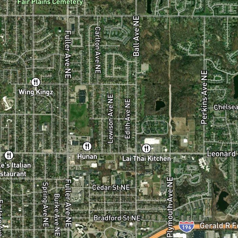 You might expect a subdivision platted over eighty acres to feel sprawling, but Lane & Walsh's East Leonard Heights Sub keeps things intimate—lots average just under a fifth of an acre, and you're a quick walk or drive from what matters. Downtown Grand Rapids sits less than nine minutes away by car, while Ball Perkins Park is a nine-minute walk through old-growth trees where deer and wild turkeys still roam. Homes here run around two hundred seventy-three thousand dollars, and the northeast location puts you minutes from eighty-four restaurants, a grocery store four minutes on foot, and transit stops at your doorstep.