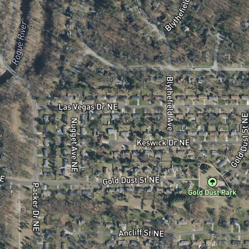 Most people expect West Michigan subdivisions to feel cookie-cutter, but Las Vegas Highlands—a 25-acre plat in the Belmont Ave & Northland Dr area—has genuine staying power: homes run around $325K, you're only 20 minutes from downtown Grand Rapids, and the bones are solid. Gold Dust Park sits a four-minute walk away, with five parks within a mile, which matters if you actually spend time outside rather than just drive through. Grocery options are generous (a dozen stores within two miles), and the nearest restaurant and coffee shop are both close enough that you don't feel stranded. Students attend Rockford Public Schools, and the airport is about half an hour out—reasonable for the price point and the space you actually get here.
