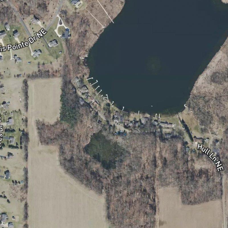 The gravel entrance to Lewis Wabasis Park sits quiet off the rural grid where Wabasis Avenue meets 12 Mile Road, six acres of modest lots carved from farmland. Homes here run around $154K, and the lots are tight—roughly 0.19 acres each—so you're living close enough to hear your neighbors' screen doors, far enough from sprawl to breathe. The subdivision itself is straightforward: no frills, no common areas, just affordable residential land in a place where you can actually own something. Belding Area School District serves the area, and Wabasis Lake sits just over half a mile away if you want to fish or launch a boat at the county park across the water. Downtown Grand Rapids is about 37 minutes out, but most days you'll be working with what's right here—quiet roads, county parks, and the kind of room that doesn't cost a fortune.