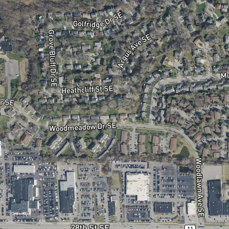 On the way to Longmeadow Plat, you'll notice the trees start getting serious—towering canopy over mid-century colonial and ranch homes that mostly top three thousand square feet, their yards the kind of deep-lot affairs where space isn't theoretical. It's a twenty-nine-acre subdivision that sits inside Ridgemoor Park, the kind of quietly established residential pocket where the streets feel deliberate and the homes look like people actually maintain them. Gerald R. Ford Airport is about twelve and a half minutes out, downtown Grand Rapids a little over fourteen—close enough to matter, far enough away that you're not hearing much.