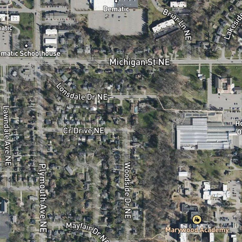 What might surprise you about Lonsdale Acres is that a twenty-eight-acre subdivision wedged into Michigan Oaks feels less like a development and more like a pocket of older, established residential character—mature trees, quarter-acre lots, homes that don't all look alike. You're eight and a half minutes from downtown Grand Rapids, yet the neighborhood has the kind of genuine remove that comes from winding streets and decent setbacks. A grocery is a twelve-minute walk; restaurants number in the hundreds within a mile radius, which means you're choosing dinner, not hunting for it. Homes here run around three hundred forty-two thousand dollars, and they move fast because people don't leave once they've landed.