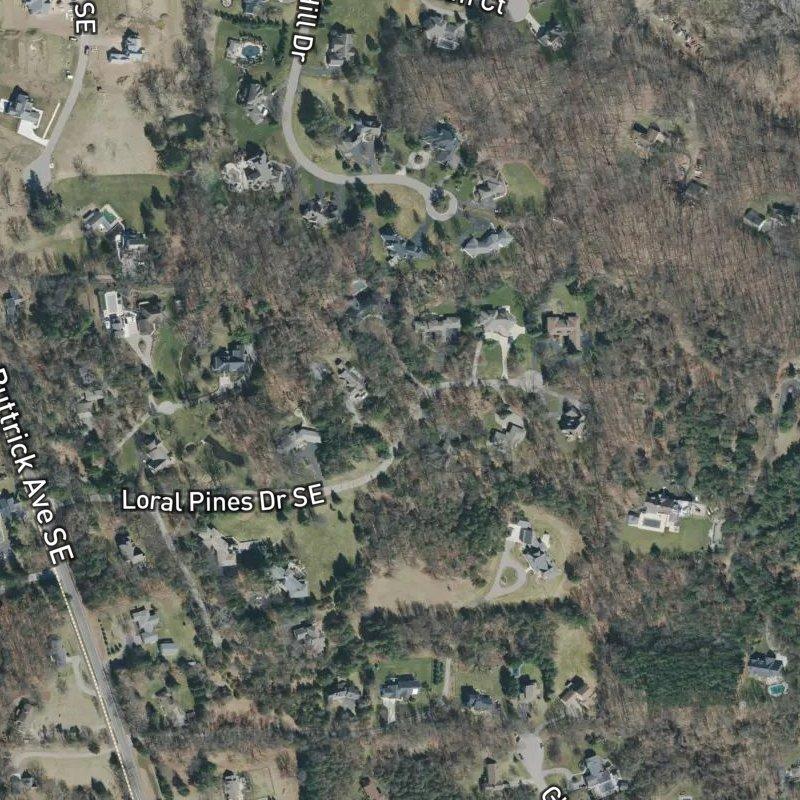 Early morning here is something special—when the sun filters through the pines that give this place its name and the sixteen acres feel like your own corner of the world. Loral Pines sits on generously sized lots, averaging just over an acre and a half each, which means real space between homes and room to breathe. You're about twenty minutes from downtown Grand Rapids and roughly the same from Gerald R. Ford airport, close enough to the city's pull but far enough back that you get land and quiet. Ada Township Park is a ten-minute walk, and there are four parks within a mile, so getting outside doesn't require much planning.