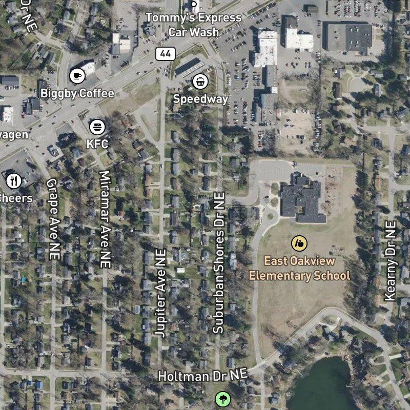 What catches most people off guard about this 20-acre plat is how much restaurant energy surrounds it—over a hundred options within a mile, with a few literally steps from your door—despite the residential quiet that defines the streets themselves. Coffee shops are a 2-minute walk away, and Holtman Park sits just 4 minutes on foot, giving you quick access to green space without sacrificing the suburban feel. Downtown Grand Rapids is about 13.8 minutes away by car, and Gerald R. Ford Airport runs just under 25 minutes, so commuting and travel are genuinely manageable. Homes here run around $350,000 to $450,000, and the area falls within Northview Public Schools, which educates kids across this part of west Michigan. You've got 7 parks within a mile and a grocery store a reasonable walk or quick drive away, making everyday errands straightforward without feeling cramped.