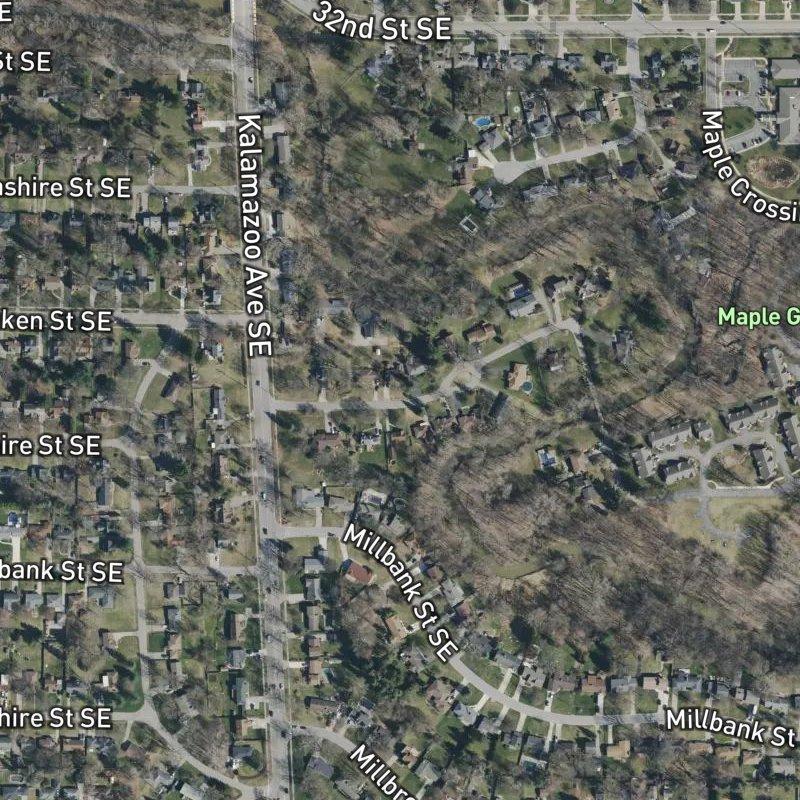 The street curves gently under a canopy of mature maples as you pull in, the kind of old-growth shade that makes a July afternoon feel manageable. M. Oppenhuizen Plat No. 1 is a seven-acre subdivision in the Millbrook Community Bridgeworks area on Grand Rapids' southeast side, where mid-century homes on roughly 0.39-acre lots sit comfortably back from the road. The median home value hovers around $312,000, with genuine walkability baked in—grocery stores and a transit stop are steps away, Ken-O-Sha Park is a twelve-minute walk, and twenty-four restaurants cluster within a mile. Downtown Grand Rapids is just under thirteen minutes by car, and Gerald R. Ford International Airport sits fourteen minutes east, so neither feels distant when you need it. Students attend Grand Rapids Public Schools, and the neighborhood's tree-lined streets, mostly absent through traffic, reward the kind of person who actually remembers what their own sidewalk looks like.