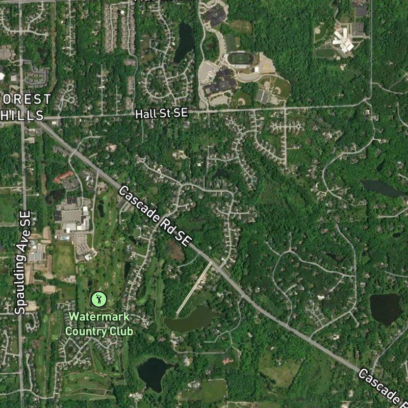 Golden hour hits differently here — those late-afternoon stretches when the sun catches the tree line and the whole community seems to glow. Manchester Hills sprawls across 100 acres of generous lots (averaging three-quarters of an acre each), so there's actual breathing room between homes instead of the cramped feeling you get elsewhere. The condos here run around $1.9M, and you're about 15 minutes from downtown Grand Rapids, which makes it easy to slip into the city without living in it. Gerald R. Ford airport is practically as close at 16 minutes, so weekend trips don't require a dawn departure. Everything you need sits within a mile or two — a grocery store, coffee spot, and restaurants all under two miles away, with 36 groceries within a wider radius if you're the type who shops around. The nearest park is about a mile and a half down the road, and if you've got a boat, Ada's Grand River Launch is less than three miles out. Kids attend Forest Hills Public Schools, and the neighborhood's part of the larger Cascade Rd & Burton St Area near West Michigan's quieter edge. It's the kind of place where you get actual land, actual proximity to what matters, and that rare thing — a commute that doesn't eat your life.