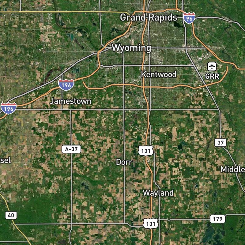 Marlo Farms Area spreads across 11,243 acres in Byron township, a growing suburban pocket about 20 minutes southwest of downtown Grand Rapids. The neighborhood leans heavily residential with traditional-style homes that run around $475K, anchored by a retail corridor where a grocery store and restaurants sit practically at your doorstep—the coffee shop too. Within a mile you're looking at 66 dining options, which means you're not exactly roughing it out here. Byron Center Public Schools serves the area. The nearest park, Byron Township Bicentennial Park, is about two miles away if you're craving actual trees and open ground, and the expressway access at M-6 and US-131 keeps everything else close enough: the airport is under 24 minutes by car. It's the kind of place where suburban convenience and a fair amount of elbow room coexist without apology.