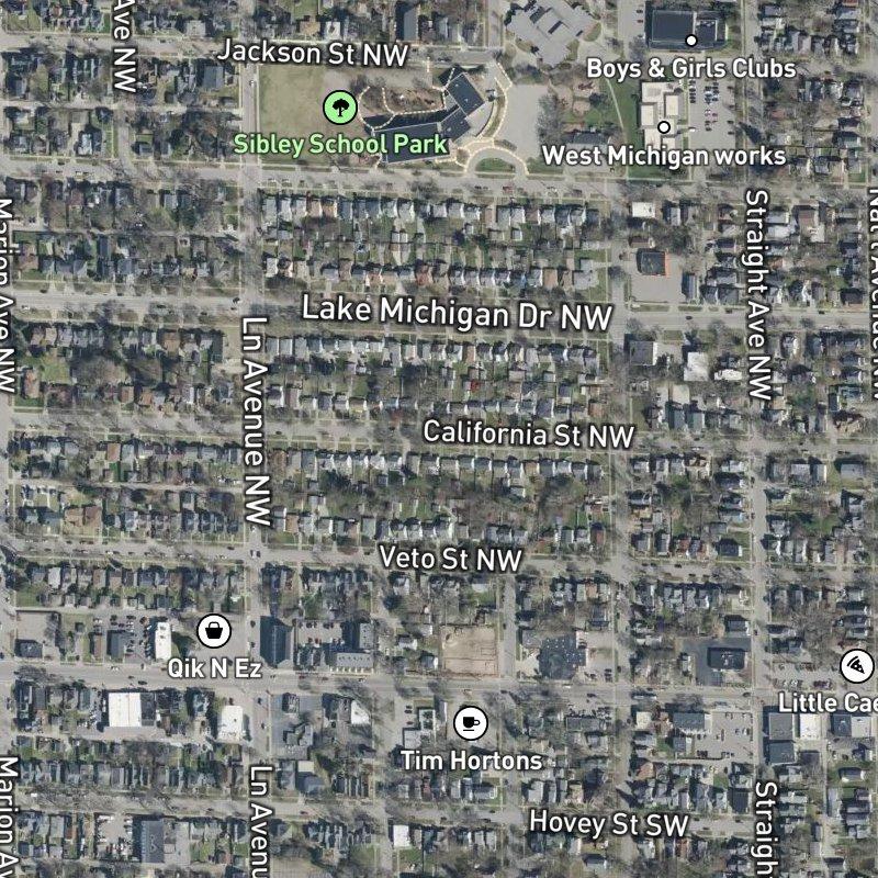 Early morning light hits this 6-acre plat best, when the streets are quiet enough to hear the neighborhood waking up—coffee shops a couple minutes' walk away, transit stops practically at your doorstep, and John Ball Zoo's grounds just beyond. Homes here run around $188K on lots averaging a thirteenth of an acre, dense enough that you're never far from dining (264 restaurants within a mile, with a coffee shop two blocks over) but still genuinely residential. Downtown Grand Rapids sits just over four minutes away, and you've got 21 parks within walking distance, including Sibley School Park three minutes on foot—useful if you've got a dog, since the neighborhood's known for people knowing their pets' names. It's Grand Rapids Public Schools territory, and the walkability leans hard on what matters: you can eat out without a car, catch transit instantly, but you'll drive for groceries. The real draw is proximity—to the zoo, to the park system, to John Ball Park itself—without feeling cramped.