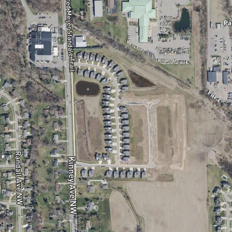 Meadow Springs sits on 26 acres in the Richview Park Area, where the horizon opens up and you're genuinely surrounded by space—the kind of place where your lot actually feels like your lot. Homes here run around $497K, which buys you a condo with real breathing room; the average lot is over 20 acres, so your neighbors aren't exactly peering through your kitchen window. Downtown Grand Rapids is about 13 minutes away when you want it, and Gerald R. Ford Airport is roughly 29 minutes south, which means you're not stuck out in the boondocks despite all that acreage.