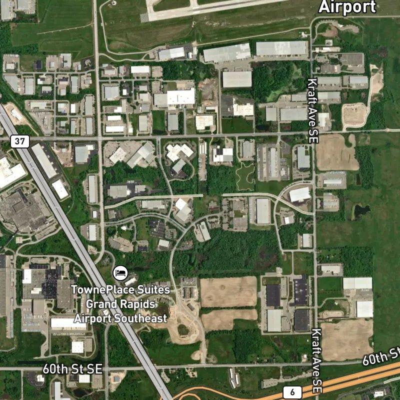 Meadowbrooke Business Park spreads across 241 acres in Cascade charter township, positioned between the Thornapple River corridor and the suburban sprawl that radiates from Gerald R. Ford International Airport—just 5.7 minutes away by car. Downtown Grand Rapids sits 22.4 minutes north, close enough to tap when you need it but far enough that you're working in a quieter pocket. The subdivision's location means you're surrounded by the township's mix of parks and coffee culture; the Airport Viewing Area is less than a mile out, and 36 restaurants cluster within the immediate radius, with a 4-minute walk to the nearest one. A grocery store sits 2.6 miles down the road, and the closest coffee shop is 1.3 miles away. This is fundamentally a business-focused development built on space—the kind of place where companies rent room to operate without the downtown noise.
