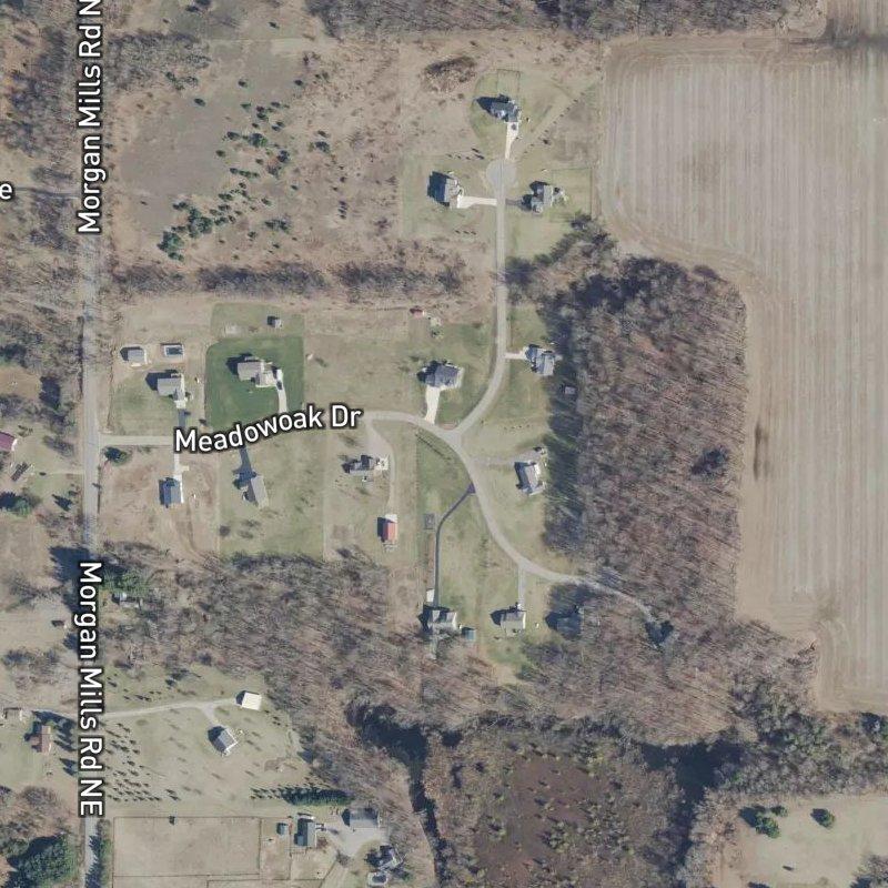 The thing that sticks with you about Meadowoak is the sheer breathing room—42 acres of condo living where the average lot runs 2.2 acres, which means you're not looking at your neighbor's fence line from your kitchen window. It's a different animal from typical condo communities, the kind of place where you get actual land without the full maintenance burden of a single-family home. Homes here run around $538K, and Greenville Public Schools serves the area. Little Blue Lake sits just 0.4 miles away, and Hawthorne Park is about 2 miles down the road if you want more structured recreation. Downtown Grand Rapids is roughly 40 minutes out, which matters if you're commuting, though the immediate surroundings are quietly suburban—a dozen grocery stores within 2 miles, the nearest one about 1.8 miles off, so you're not driving far for essentials or eating out.