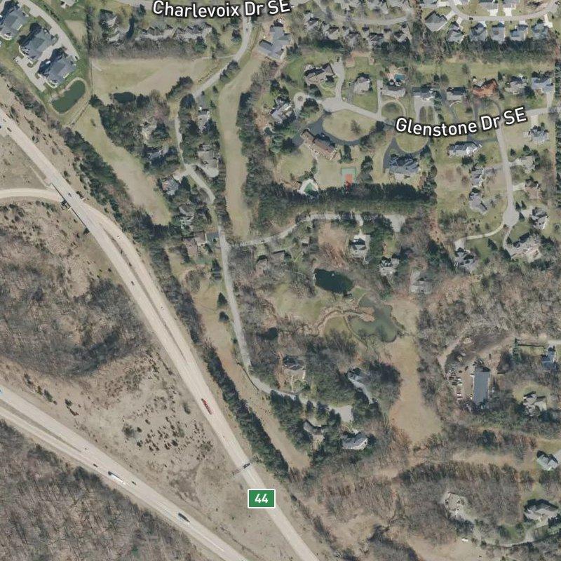 So you've got this gated community spread across 38 acres, each lot averaging about half an acre—enough space that you're not looking at your neighbor's deck from your kitchen window. The homes here are custom builds, the kind with walkout ranches and substantial private road frontage, ranging from around $425K to $2 million depending on what you're building or what's already there. Most cluster in the mid-range, with a median around $859K. The whole thing feels removed without actually being removed—a dozen restaurants within a mile, a grocery store about a 15-minute walk, coffee shops slightly farther. Gerald R. Ford Airport is 14 minutes away, and downtown Grand Rapids takes about 18 and a half minutes, so you're close enough to the action but far enough that you don't have to think about it every day. The community sits within the Forest Hills Public Schools district, and there's a dog park a short walk away if you've got a four-legged reason to leave the house. The real draw, though, is the setup itself—private roads, cul-de-sacs, the kind of gated-community privacy that lets you breathe on your own land while staying minutes from everything West Michigan has to offer.