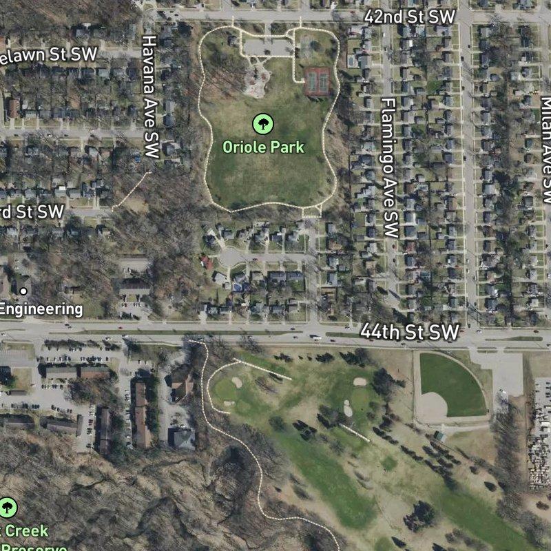 Late afternoon light hits this seven-acre subdivision best, when the tree-lined streets start casting long shadows across the modest lots. Memorial Park Plat sits in the Woodview Plat Area, where homes cluster on average quarter-acre parcels—tight enough to feel like a real neighborhood, spacious enough that you're not living on top of your neighbors. Downtown Grand Rapids is just over ten minutes away, and there's a transit stop steps from here if you'd rather skip the drive. Oriole Park is a three-minute walk, and you've got eleven parks within a mile, so green space isn't hard to find.