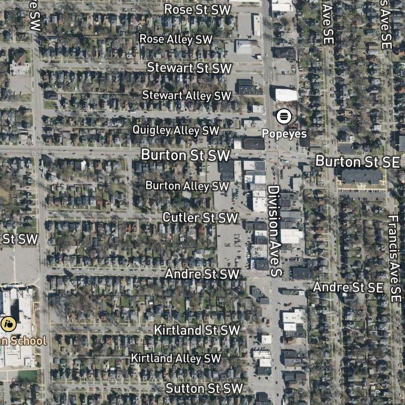 Driving through Merritt's Sub. feels like moving through a neighborhood where things happen on foot—a transit stop is steps away, restaurants line the blocks, and a grocery is an easy walk. The subdivision sits within Garfield Park, where over 40 restaurants crowd the immediate mile, many serving Mexican and Latin cuisine that defines the area's culinary identity. Homes here average around $194K on tight lots (0.14 acres), the kind of close-quarters development where you're never far from a corner store or a neighbor's porch. Downtown Grand Rapids is just 7 minutes away by car, and Grand Rapids Public Schools serves the area. Seven parks sit within a mile—including Burton Woods Park, an 8-minute walk—so despite the dense feel, green space is genuinely accessible. What makes this 10-acre pocket work is that car-dependent convenience and walkable edge live together here, with transit options that actually make staying carless possible.