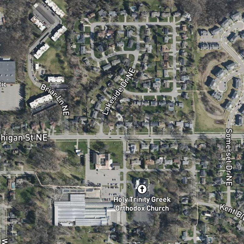 You can walk to dinner from Michigan Maples—there are a dozen restaurants within a mile, and the nearest coffee spot is about the same distance—but what really strikes you about this six-acre subdivision is how it sits right in the middle of Michigan Oaks, a neighborhood where mature trees and quiet streets somehow coexist with being eight minutes from downtown Grand Rapids. The lots average just over a third of an acre, which means houses have real breathing room without eating up the wooded character that defines the area. Mid Lake is less than a mile away, and Remington Park sits at just under a mile too—so there's green space everywhere you look. Homes here run around $447K, with Lighthouse Academy serving the area, and you're close enough to Gerald R. Ford Airport that the commute barely registers.