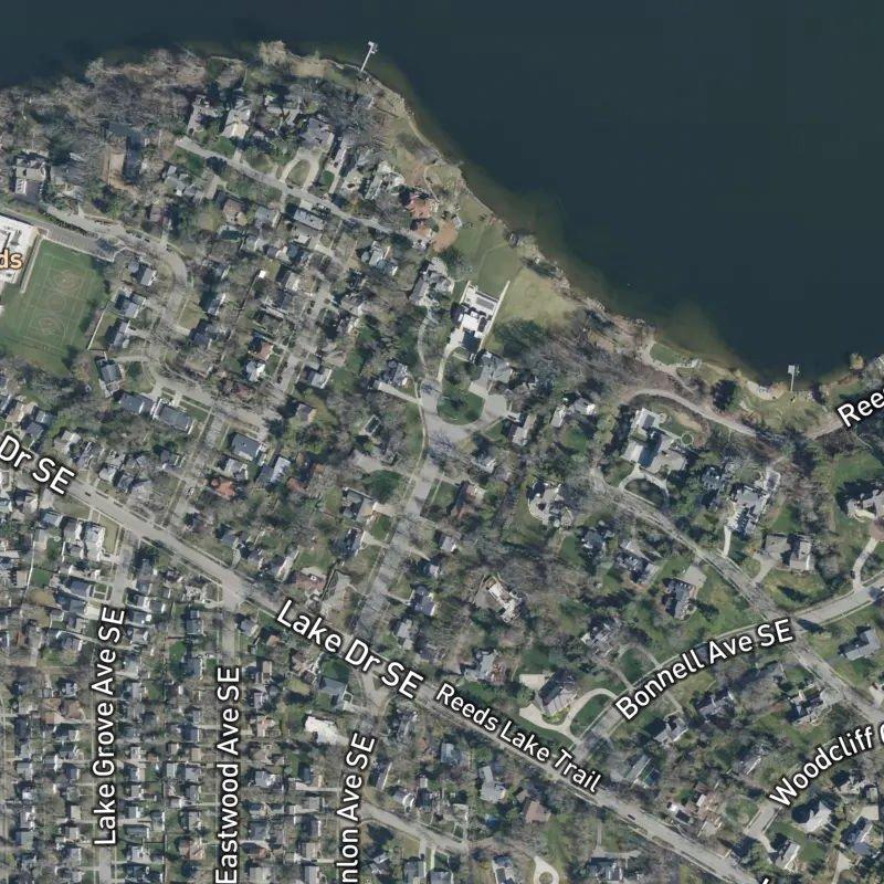 The tree-lined streets here feel removed from the city's pulse, yet downtown Grand Rapids is just 11.7 minutes away. Minor-Martin Plat sits within the Mary M. Bonnells Sub. Area, a 12-acre subdivision where lots average about half an acre—enough breathing room without sprawl. Homes cluster in the $1.1M range, and the East Grand Rapids Public Schools district serves the area. Reeds Lake is less than half a mile off, and there's serious density nearby: 84 restaurants and 24 grocery stores within a couple miles, most within a short walk. A transit stop sits five minutes on foot, John Collins Park is a 12-minute walk away, and seven parks fall within a mile radius. Gerald R. Ford International Airport is 16.6 minutes south.