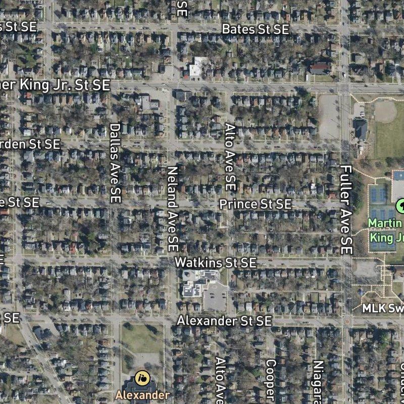 Moodys Add. is a 10-acre platted subdivision where the real advantage is transit—you're steps from The Rapid bus system, which means getting downtown Grand Rapids takes just 7 minutes by car when you want it, but you don't have to rely on one. Homes here run around $220K on average, sitting just inside the Southeast End neighborhood where walkable streets and older housing stock (lots built before 1940) define the feel. Martin Luther King Jr. Park is a quick 4-minute walk, and there are 12 parks within a mile if you need green space; grocery stores, coffee, and restaurants are all within a 10-minute walk or so. With 199 restaurants and 42 grocery stores nearby, you're genuinely close to what Eastown and downtown offer without the property tax hit of East Grand Rapids itself. Families and first-time buyers come here for exactly that balance—urban convenience on a smaller footprint. Schools are served by Grand Rapids Public Schools.