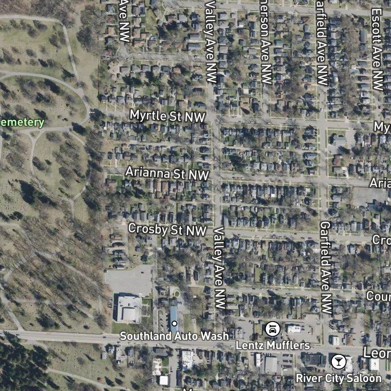 Lined with modest brick homes and tree-lined streets, Munros Resub. sits deep in West Grand, a second-largest neighborhood with real staying power despite its size. The subdivision's 19 acres hold tight lots—averaging 0.12 acres each—and homes here run around $255K, putting them within reach of people working downtown: you're roughly 8 minutes by car from the central business district. Dining options cluster immediately nearby—78 restaurants within a mile, from taquerias to breweries—and a transit stop sits steps from the subdivision, making car-free runs entirely possible for errands and groceries. Grand Rapids Public Schools serves the area, and Richmond Park, with its 57 acres of baseball fields, tennis courts, and a small ski slope, is a short 12-minute walk away. The Grand River Fish Ladder sits a mile south, drawing crowds each spring when salmon and steelhead begin their upstream run.