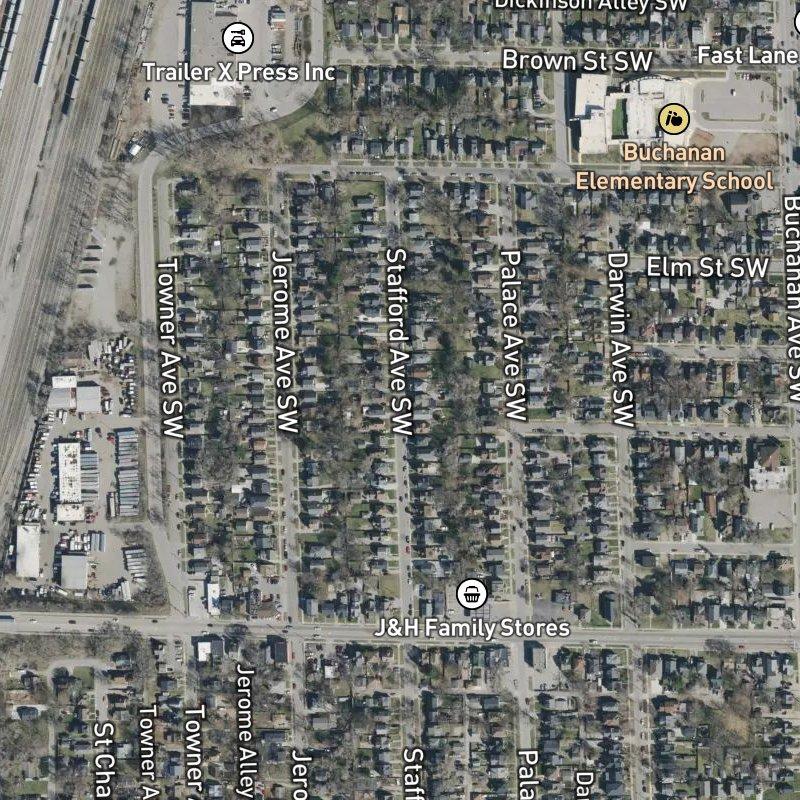 Sitting within Garfield Park just minutes from downtown Grand Rapids, this platted subdivision spreads across 10 acres with lots averaging 0.12 acres—the kind of compact footprint that keeps you close to neighbors and closer to everything else. You're six minutes from downtown, and the neighborhood radiates outward from its namesake park: 29 acres of forest preserve with a splash pad, disc golf, and baseball diamonds. Walk out your door and you'll hit a grocery store in about ten minutes, a restaurant in nine, and you're steps from transit. Over 60 restaurants sit within a mile, many of them taquerias and Latin eateries anchoring Division Avenue, plus another couple dozen grocery stores within two miles. Grand Rapids Public Schools serves the area. Homes here run around $154K, and the real estate market moves fast—the kind of place where character homes from the 1800s (Queen Annes, Dutch Colonials, Foursquares) sit alongside newer development, and hand-painted murals mark the streets.