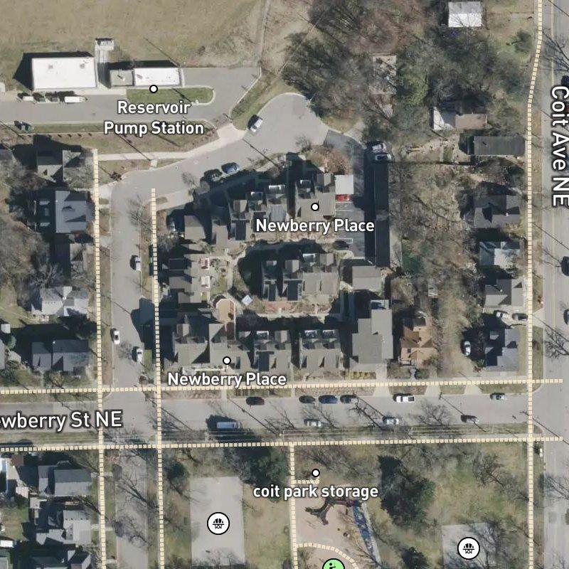...and then there's Newberry Place, which manages to be genuinely low-key despite sitting on the edge of one of Grand Rapids's most visually dramatic neighborhoods. It's a one-acre condo community in Belknap Lookout, that bluff-perched area known for its 160-foot elevation and unobstructed views of downtown—though the real charm here is less about the vista and more about the location itself. You're four and a half minutes from downtown, which means you're close enough to access the whole city without pretending you live there, and there are 384 restaurants within a mile if you're the type who gets bored with your own kitchen (or, let's be honest, if you simply don't cook). Coit Park sits a two-minute walk away, and transit access is a three-minute stroll, so you're not stranded if the car stays home. Grand Rapids Public Schools serves the area.