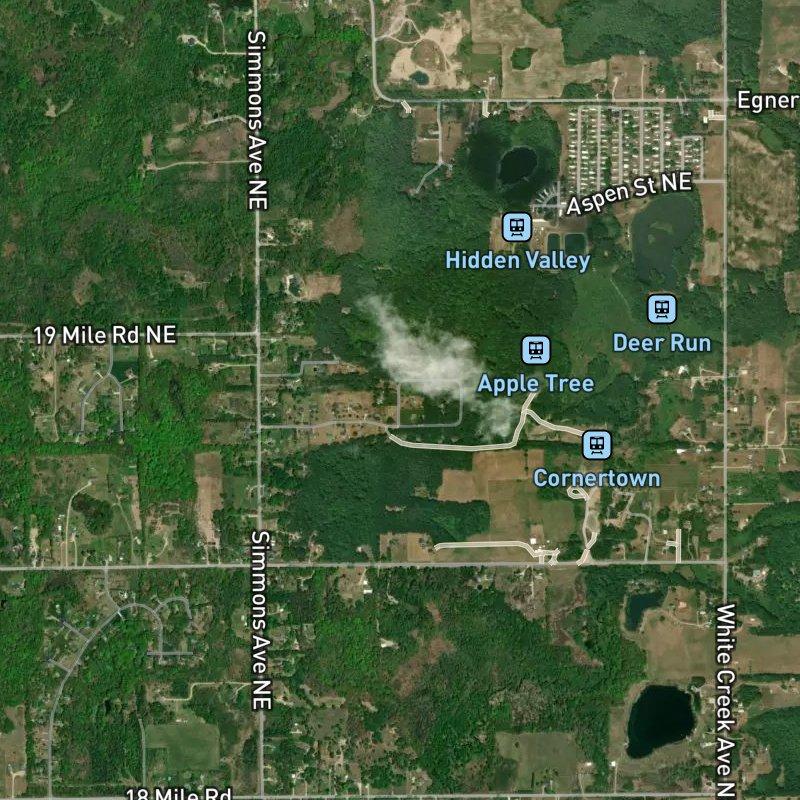 The landscape here rolls in gentle curves—57 acres of it—with lots that average 1.39 acres apiece, giving you real space between neighbors without feeling remote. Homes run around $366K, and they're arranged across the property with enough breathing room that you're not staring into someone else's living room. A 33-minute drive gets you downtown Grand Rapids when you need it, but most days you won't; there's a grocery store about a mile and a half away, a restaurant and coffee shop roughly the same distance, and ten grocery options within two miles if you're the type who likes to shop around. Riggle Park sits 2.2 miles down the road for when you want to get outside without leaving your own front door. The rhythm here is unhurried—wide open sky, the kind of lot size that lets you actually use your land instead of just own it, and enough local conveniences nearby that you're not dependent on a single trip to feel fed and stocked.